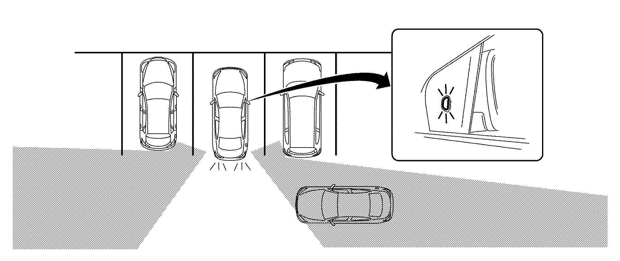 If the radar detects a vehicle approaching from the side, the system gives visual and audible warning.