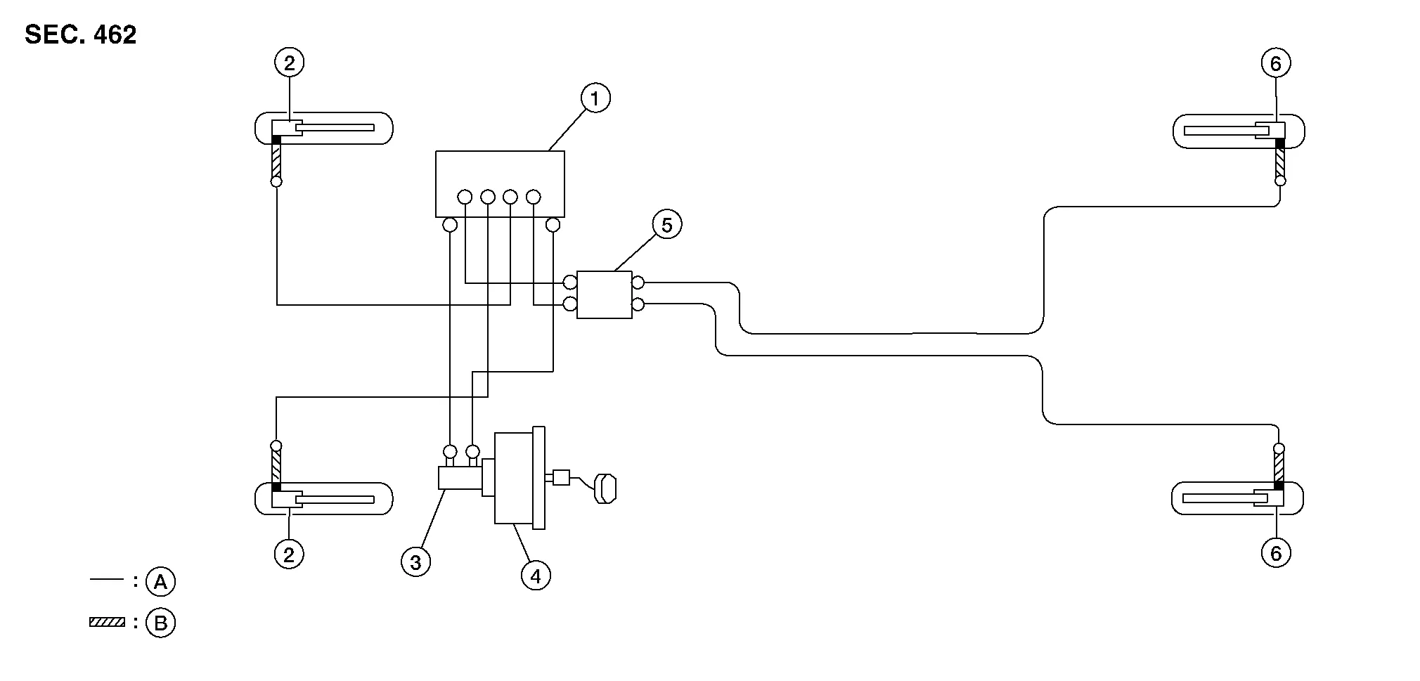 | 1. | ABS actuator and electric unit (control unit) | 2. | Front disc brake | 3. | Master cylinder assembly |