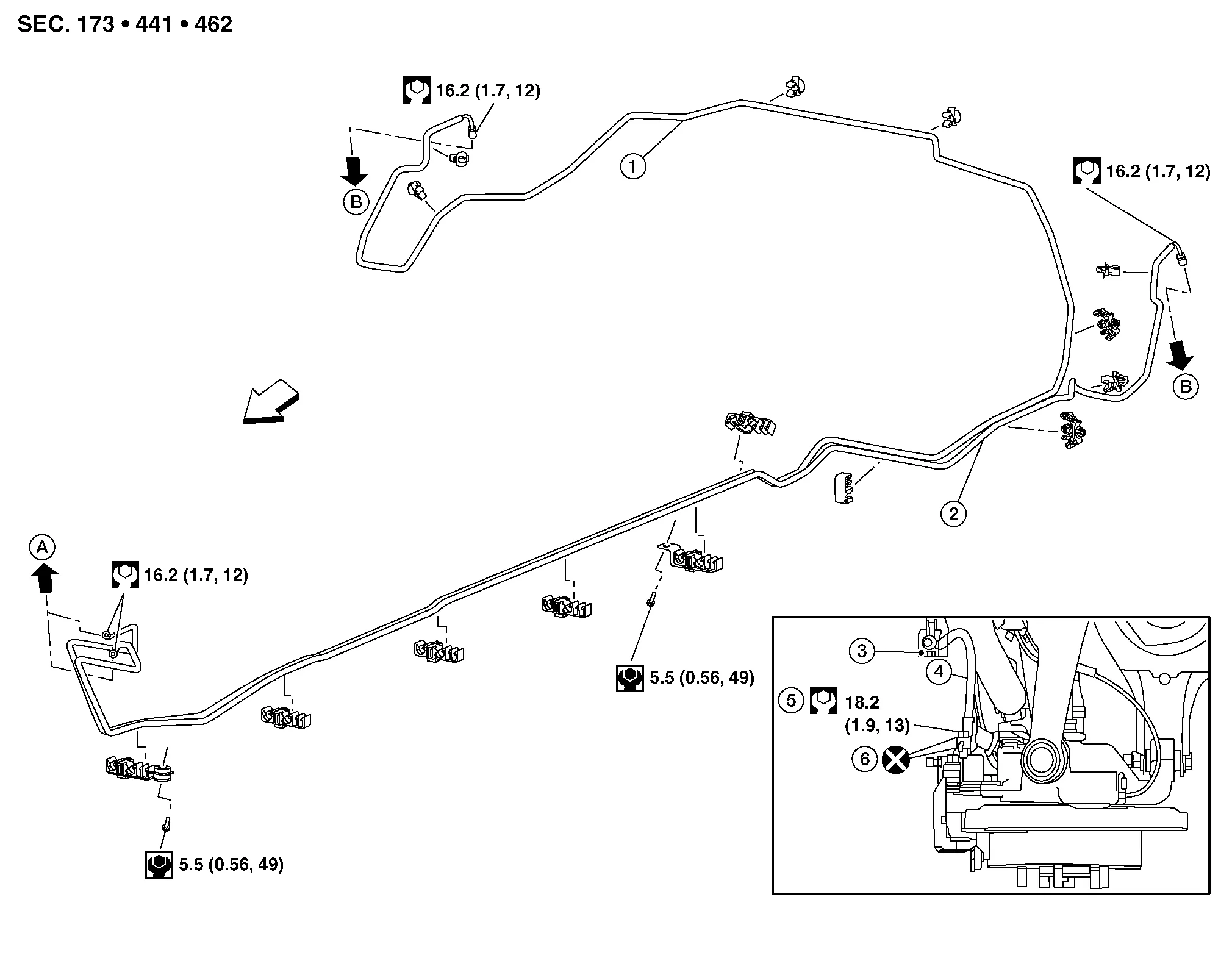 | A. | To brake pipe connector. Refer to Exploded View. | B. | To rear brake hose | ![]() |