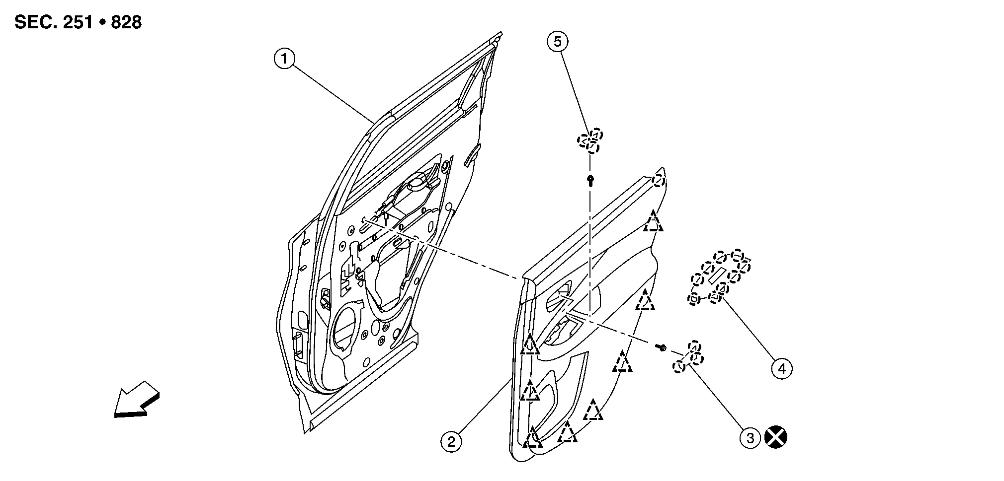 | 1. | Rear door | 2. | Rear door finisher | 3. | Inside door handle escutcheon |
