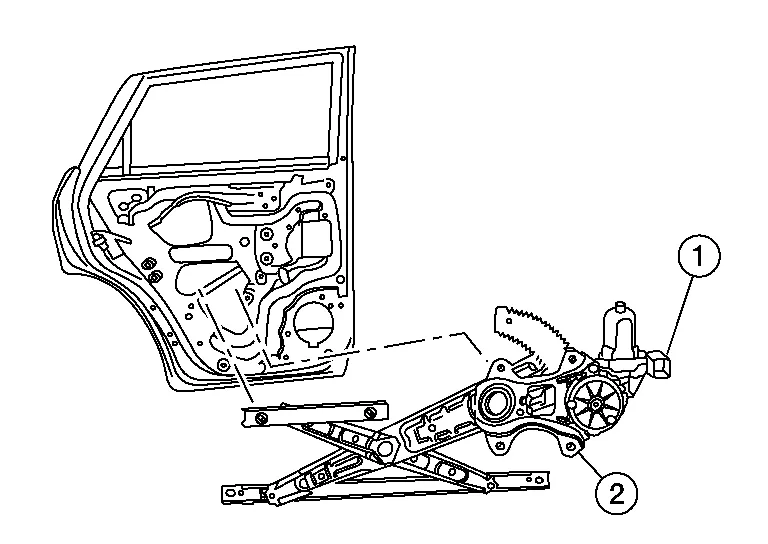 Remove rear door regulator (2).