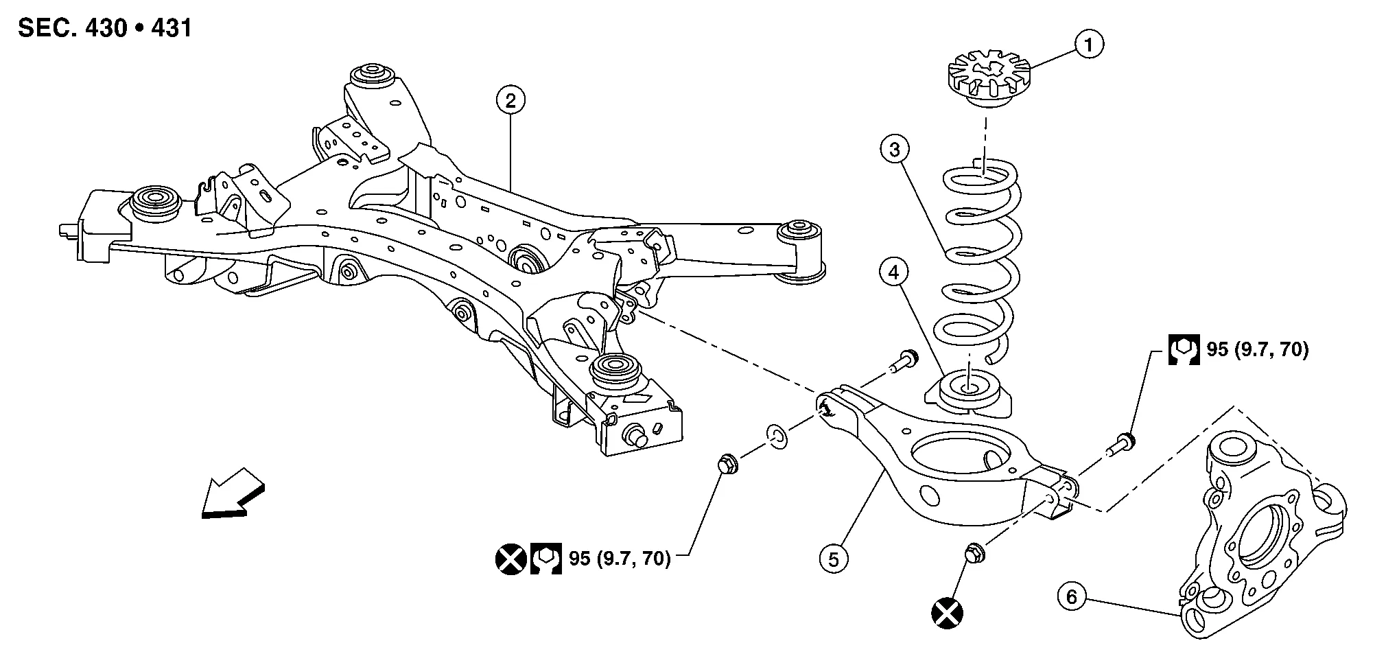 | 1. | Upper seat | 2. | Rear suspension member | 3. | Coil spring |