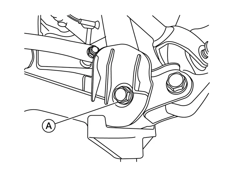 Remove the lower rear shock absorber bolt (A) using power tool.