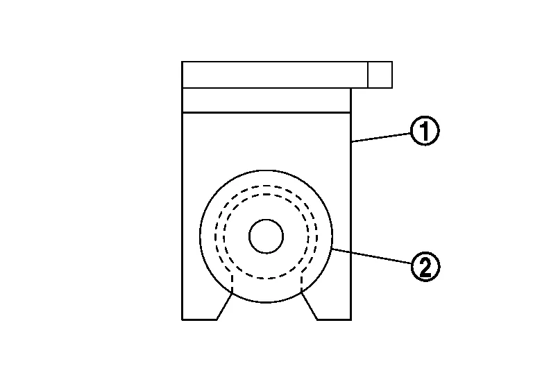 Do not twist the rear wheel sensor harness when installing the rear wheel sensor. Check that the grommet (2) is fully inserted into the bracket (1). Check that the rear wheel sensor harness is not twisted after installation.
