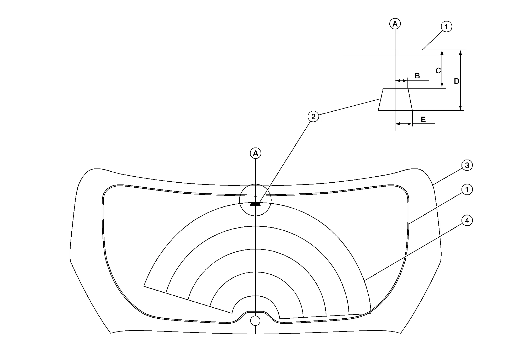 | 4. | Wiper area | A. | Center line | B. | 7.0 mm (0.28 in) |