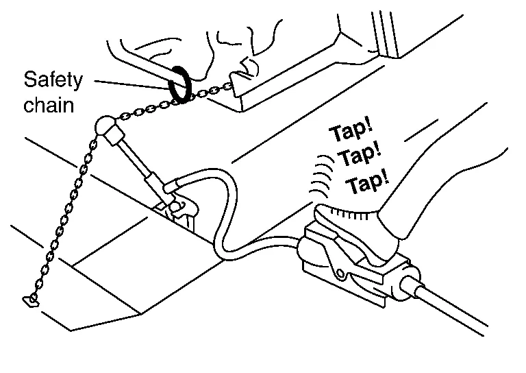 Sometimes a load of approximately 5,000 kg (11,025 lb) is applied during repair work. Accordingly, the clamp must be tightened securely. Be sure to use safety chain.
