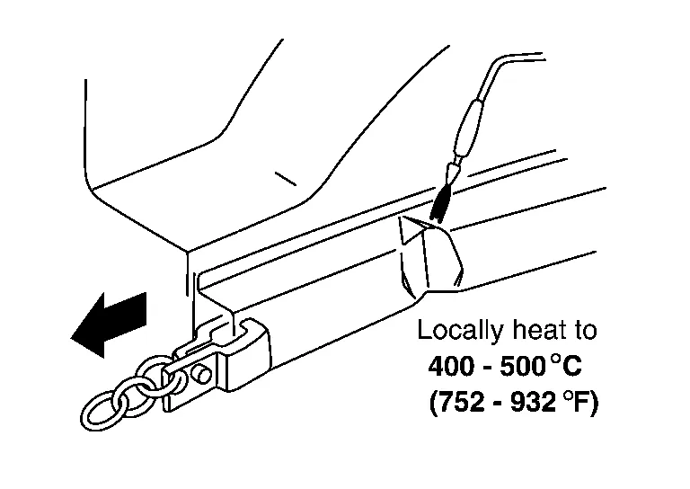 Locally heat the panel to 400°C - 500°C (752°C - 932°F) to the extent that the panel is not colored. Do not heat above 700°C (1,292°F), or strength will be reduced. Do not raise to a temperature of more than 550°C (1,020°F) for HSS parts.