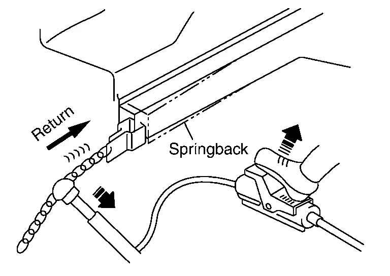 The proper amount of pull can be determined by observing the clearance at the door or trunk lid.
