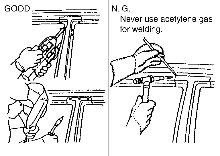 If spot welding is impossible, use MAG welding. Do not use gas (torch) for welding because it is inferior in welding strength.