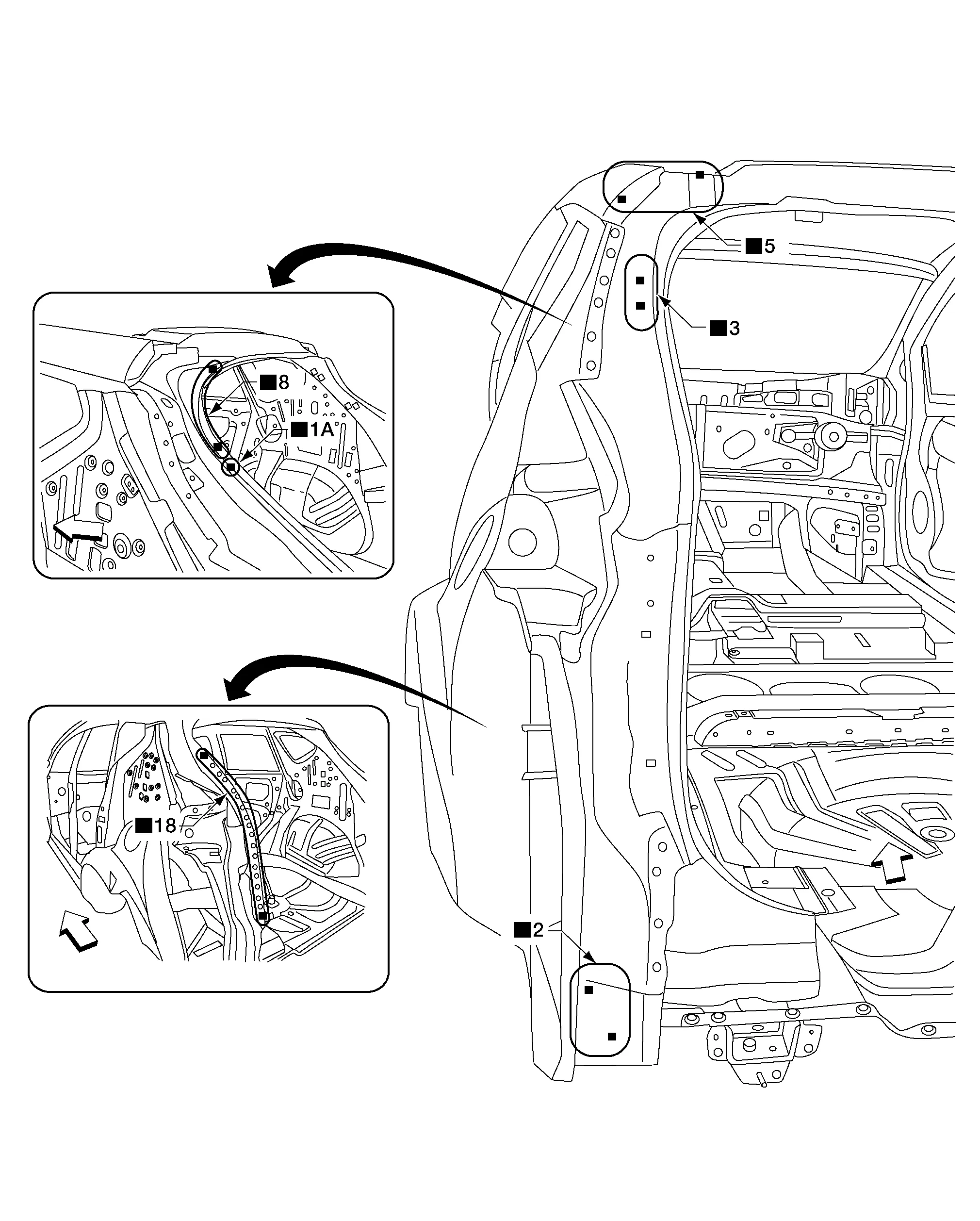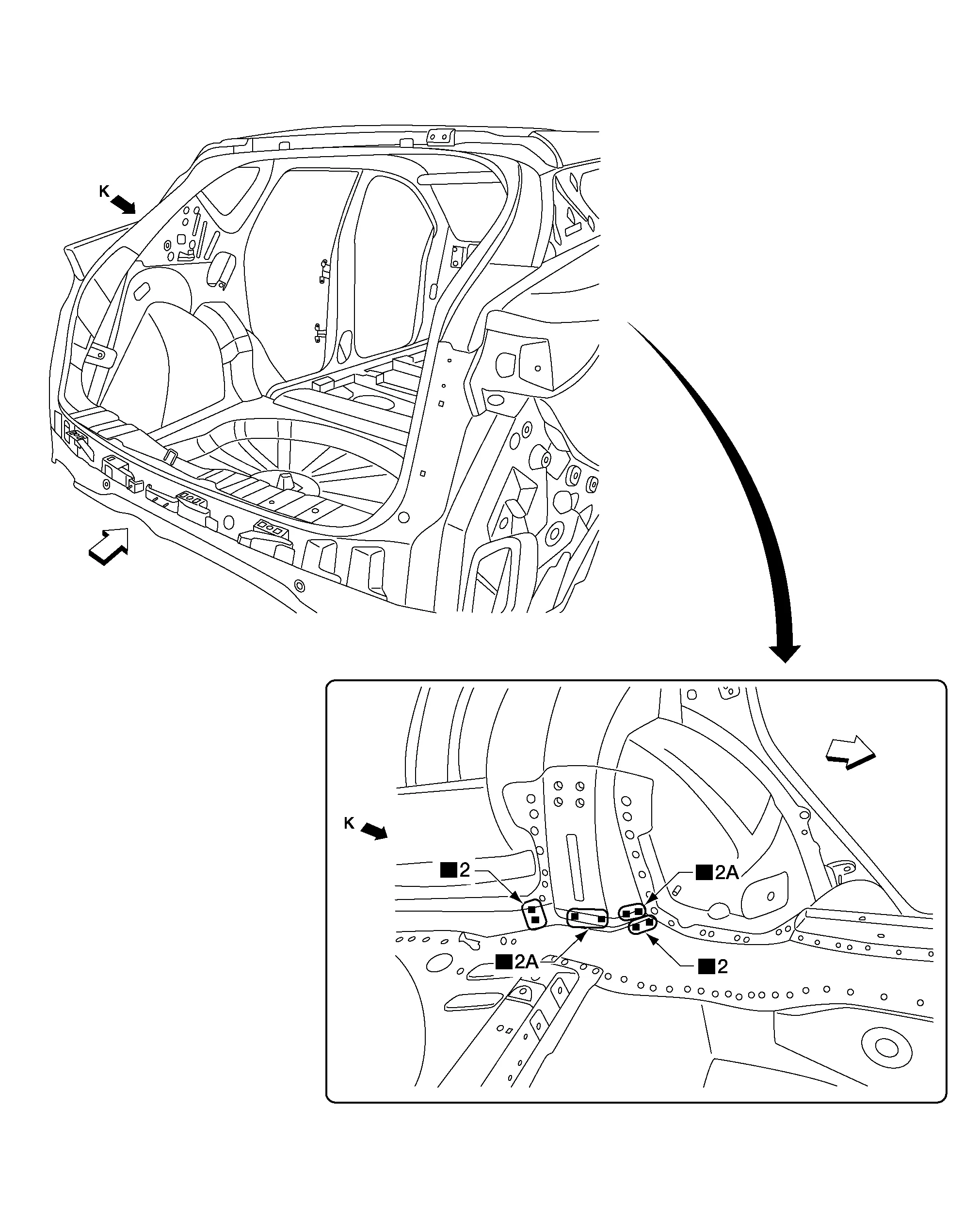 | • | Rear floor side (RH, LH) | ![]() |