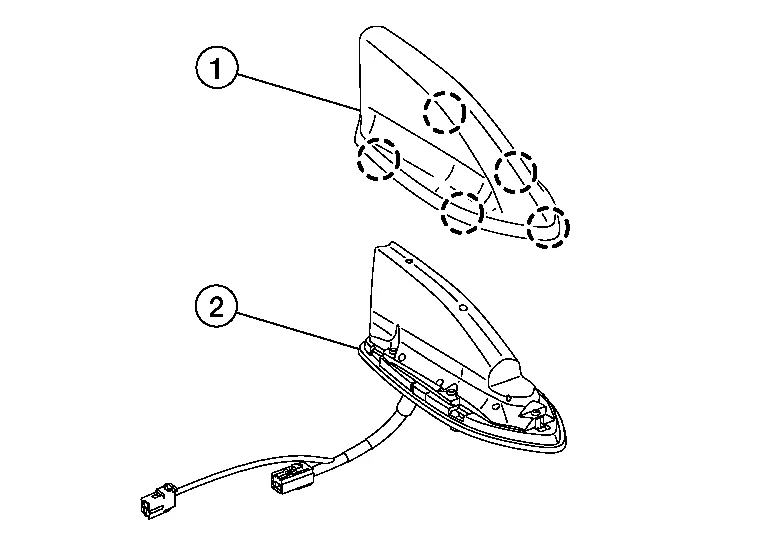 Using a suitable tool, release pawls between roof antenna (2) and the cover (1).