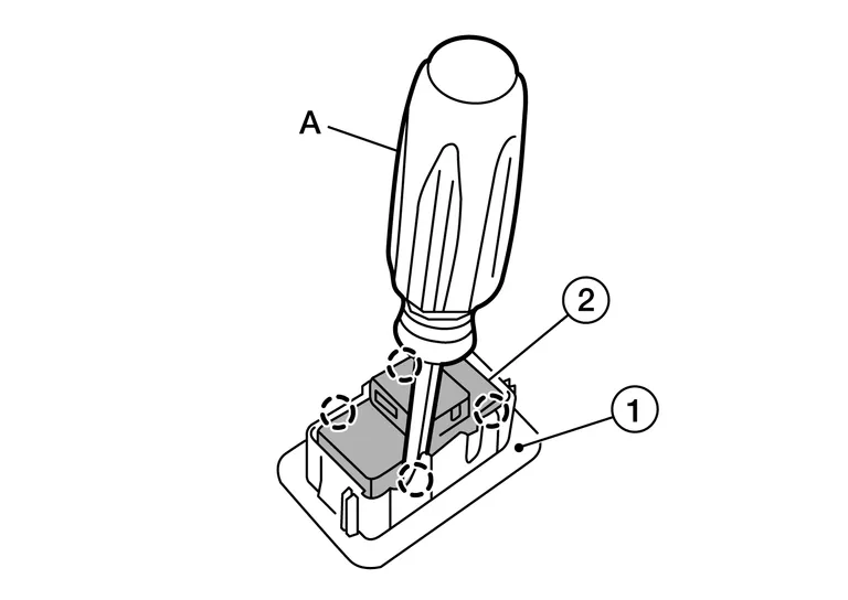 Release the pawls using a suitable tool (A) and remove seat memory switch (2) from switch finisher (1).