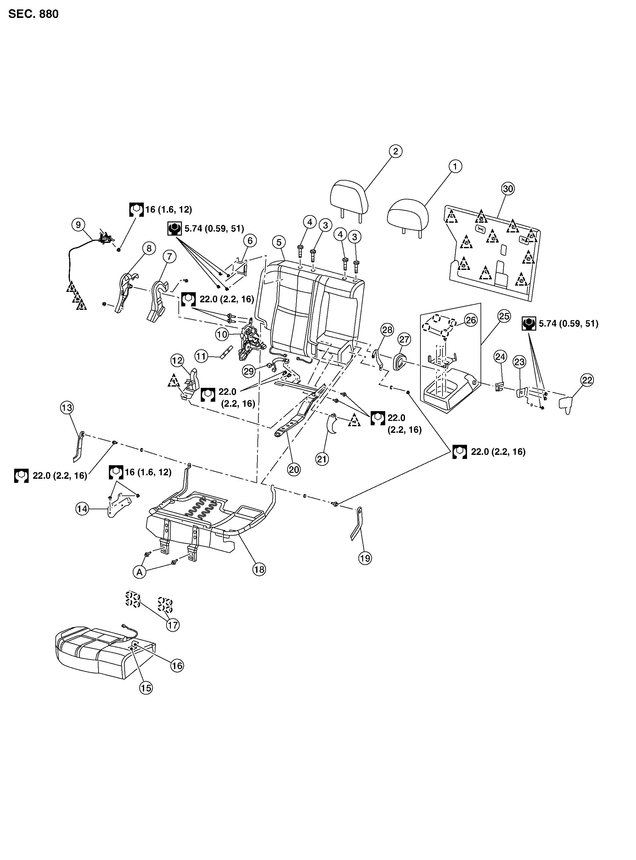 | 28. | Armrest inner bracket | 29. | Seat harness | 30. | Seatback board |