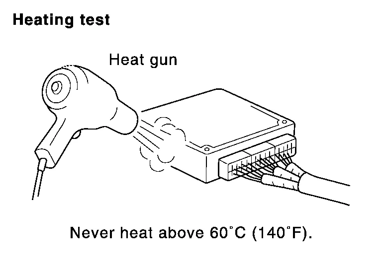 When using a DMM, be careful not to let test probes get close to each other to prevent the power transistor in the control unit from damaging battery voltage because of short circuiting.