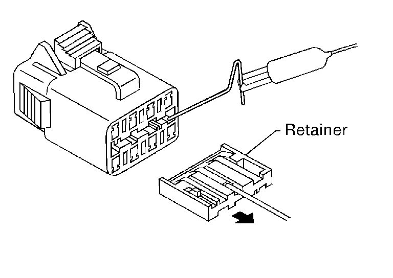Some connectors do not have a notch above each terminal. To probe each terminal, remove the connector retainer to make contact space for probing.