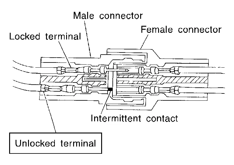 An enlarged contact spring of a terminal may create intermittent signals in the circuit.
