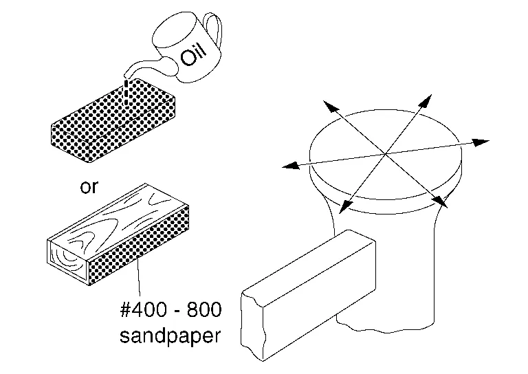 (d) After smoothing the hammer face, polish it with an oil stone or #400 - #800 abrasive paper wrapped around a wooden block. Polish the face in all directions.