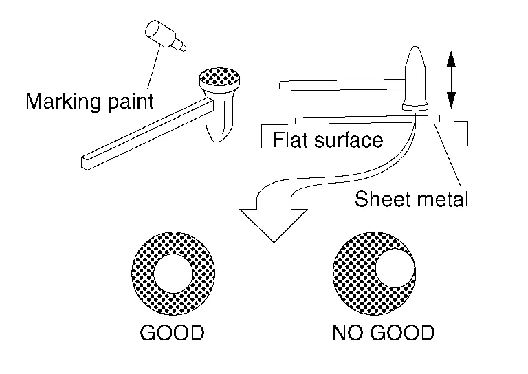 (e) To check the finish, apply marking paint to the hammer face . Hit a piece of flat sheet metal on a flat surface.