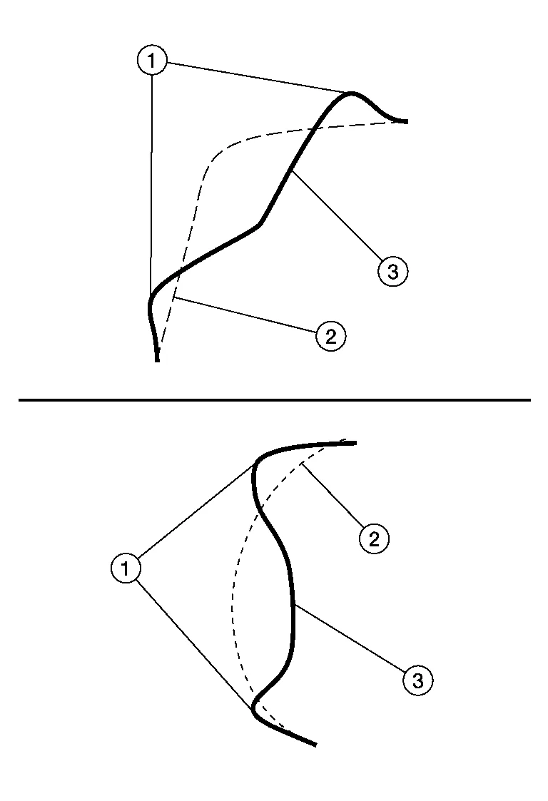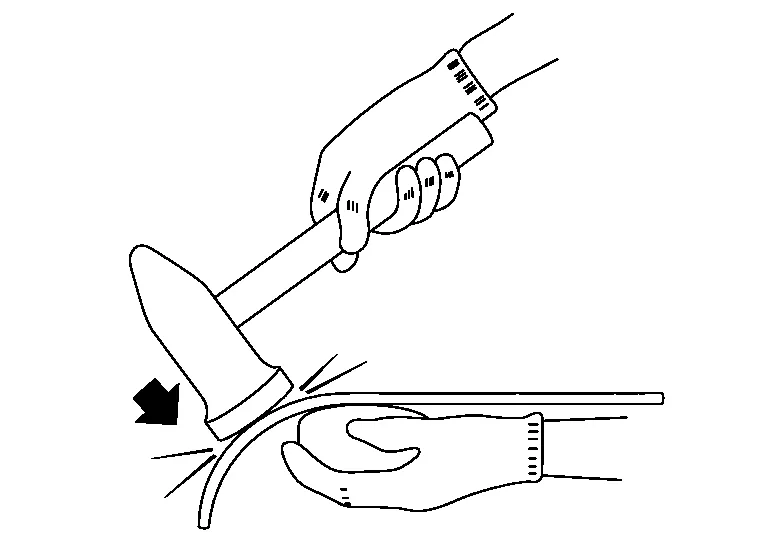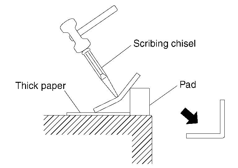 This type of chisel must have a smoothly rounded edge as shown in the figure. If the edge is sharp, the body panel will be nicked.