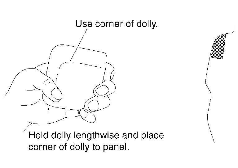 (c) If ordinary hammering is impossible due to limited space, substitute a dolly for the hammer, and strike the dented portion with the dolly.