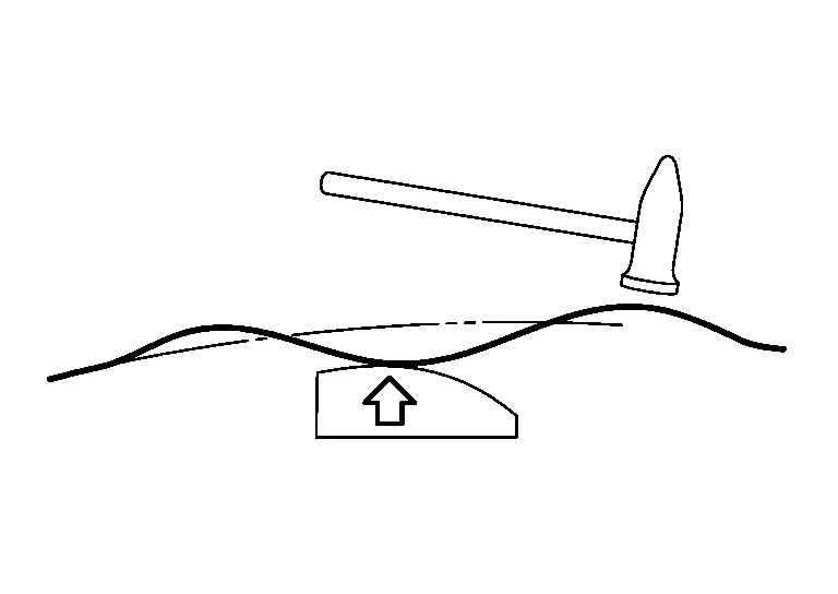 (a) Place the dolly under the deepest dent, and hammer the highest portion of the top surface.