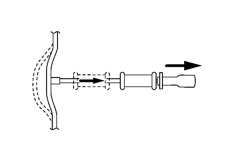 A pin or washer is welded directly to the body panel dent without drilling. The panel dent area is then pulled outward with the sliding hammer. Because no drilling is required, panel strength is unaffected. Corrosion problems are also reduced.