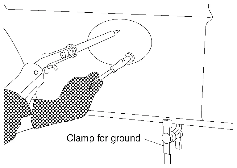 Because the stud welder welds pins directly, the paint must be removed from the dent surrounding area and the area where body ground is established.