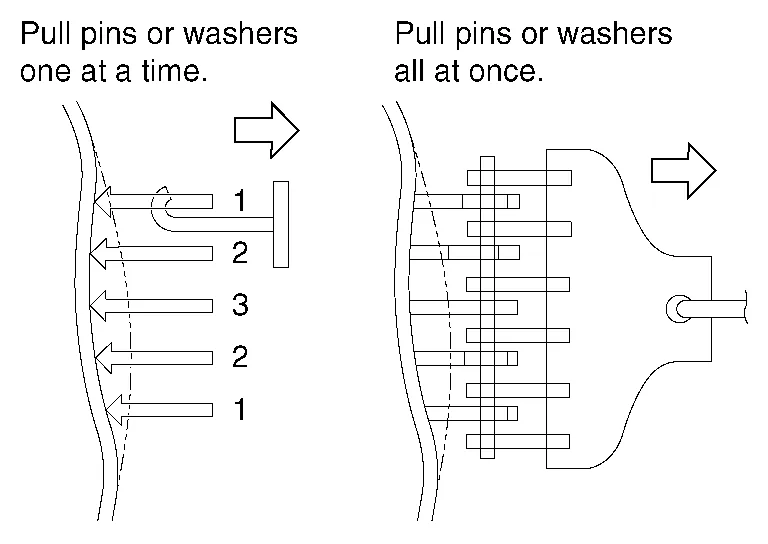 They are then pulled separately to repair the dent.
