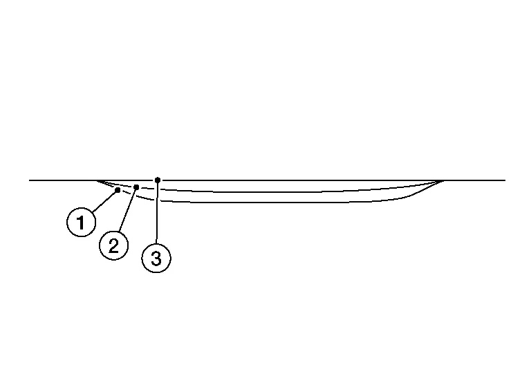 It is important to weld on the line. Therefore, first mark the line by using the pulling bar and making a scratch on the bare metal. You can also use the Flatliner Laser to make the line. Welding of the bits is done most of the time on the tangent point (2) of the line. This depends on the direction of the hit. Try not to weld on the radius area (1) or round area of the bodyline. This will increase the risk of making a hole in the panel.