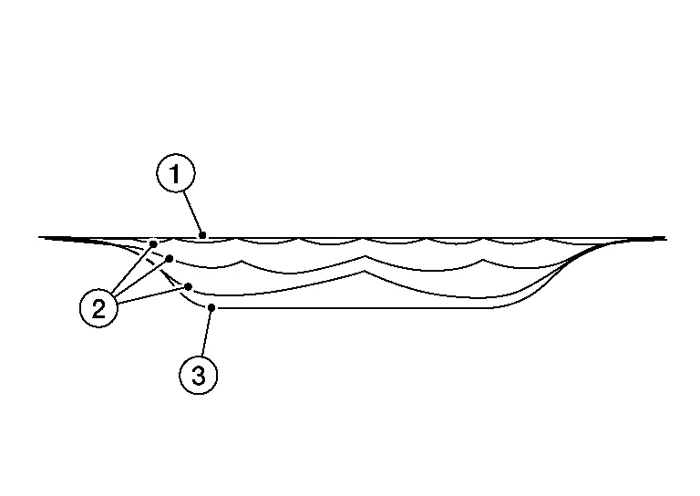In most cases, there is also a crown (1) in the damage. The crown is the area where the metal has been pushed out. Depending on the shape of the metal and the direction of the hit the crowns are in different areas.