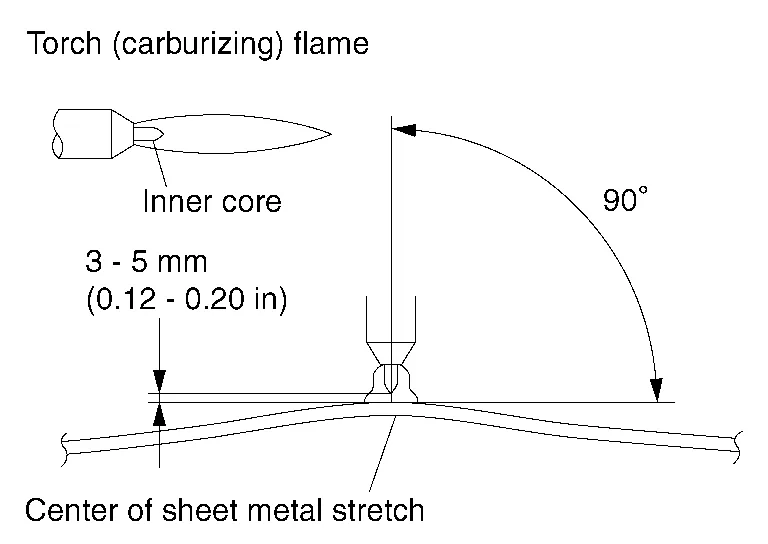 The area heated with a welding torch must be approximately 3 mm - 5 mm (0.12 in - 0.20 in) in diameter if the panel shape is complex, and approximately 6 mm - 15 mm (0.24 in - 0.59 in) in diameter if it is flat.