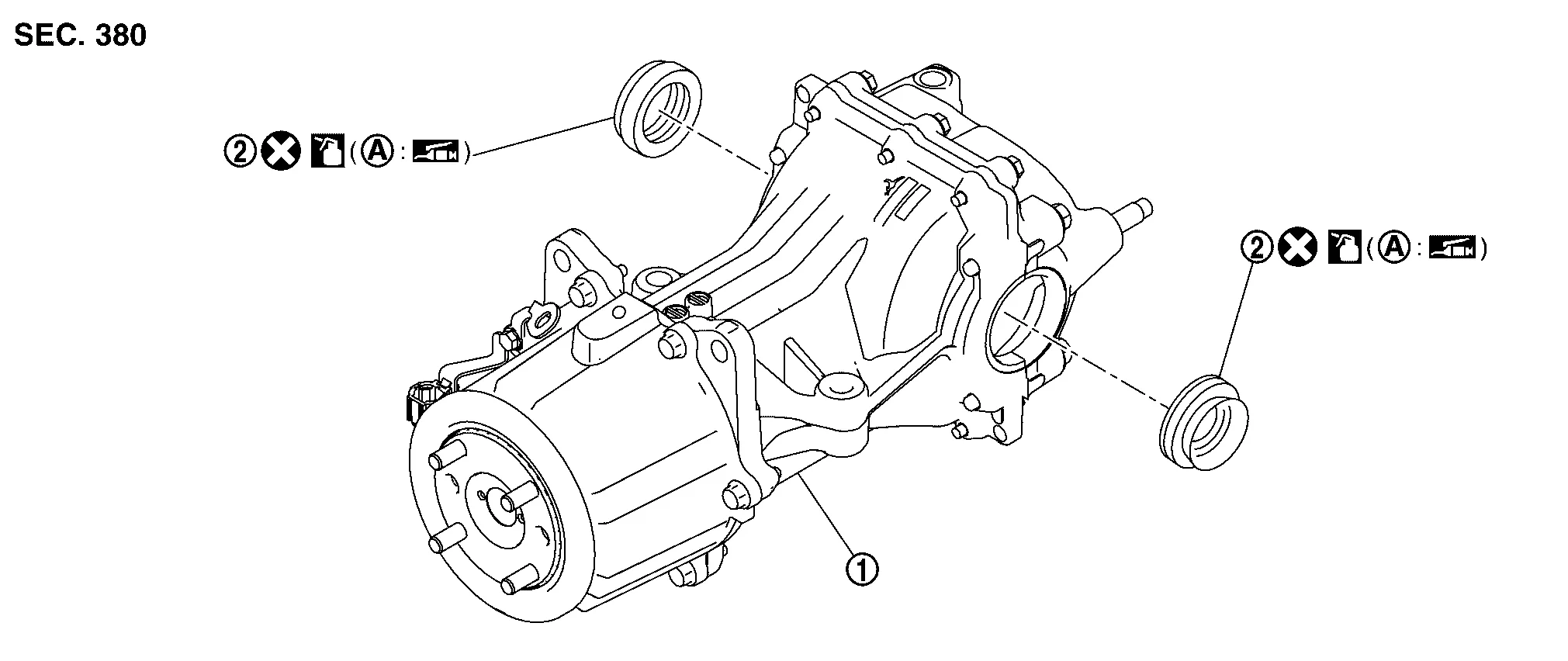 Using the drift (A) (SST: KV38100200), drive side oil seal until it becomes flush with the gear carrier end.