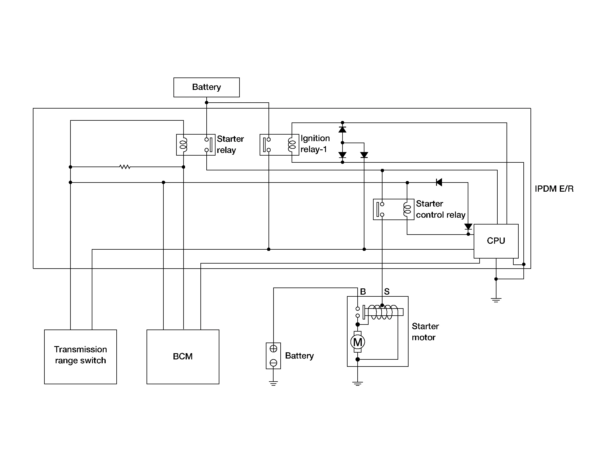 The starter motor plunger closes and provides a closed circuit between the battery and the starter motor. The starter motor is grounded to the cylinder block. With power and ground supplied, the starter motor operates.