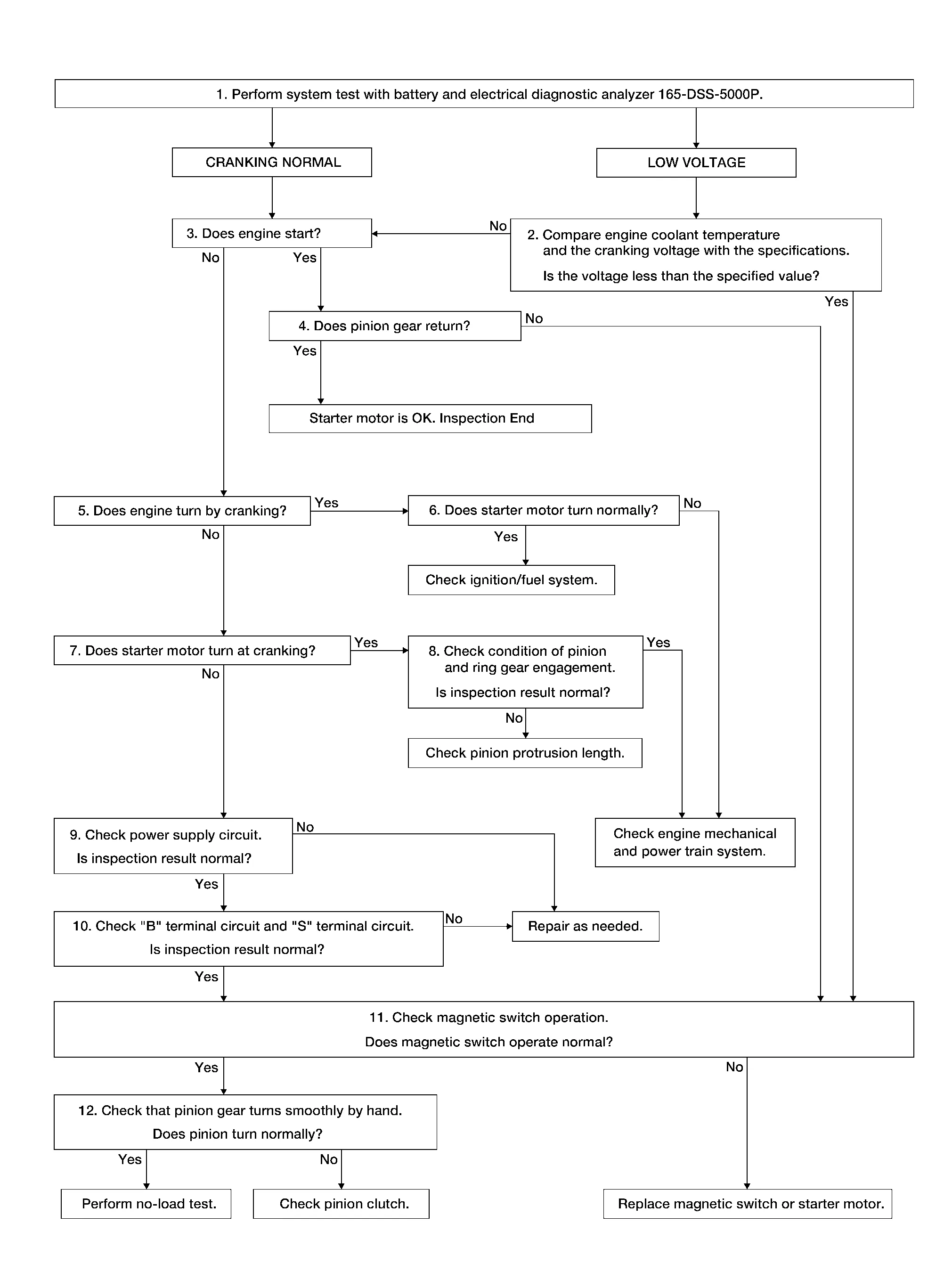 STARTING SYSTEM DIAGNOSIS WITH 165-DSS-5000P