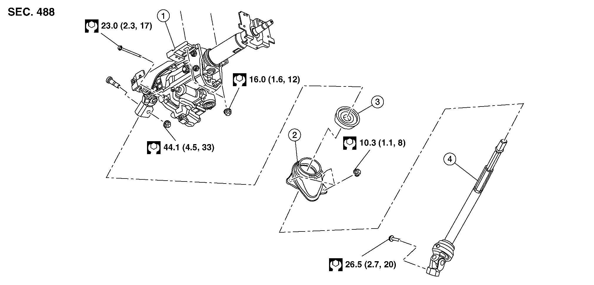 When installing the steering column, finger-tighten all of the lower bracket and joint retaining bolts then tighten them to specification. Do not apply undue stress to the steering column.