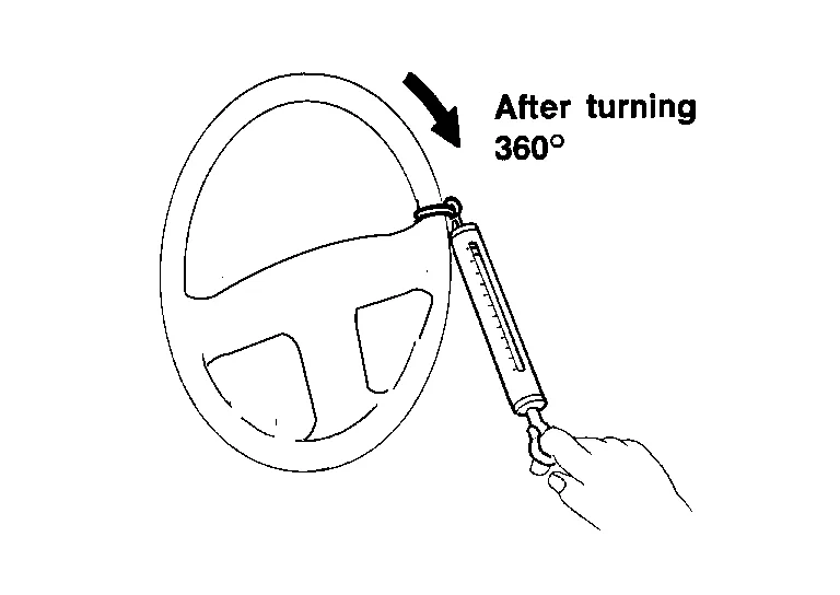 Check steering wheel turning force using Tool when steering wheel has been turned 360° from the neutral position.