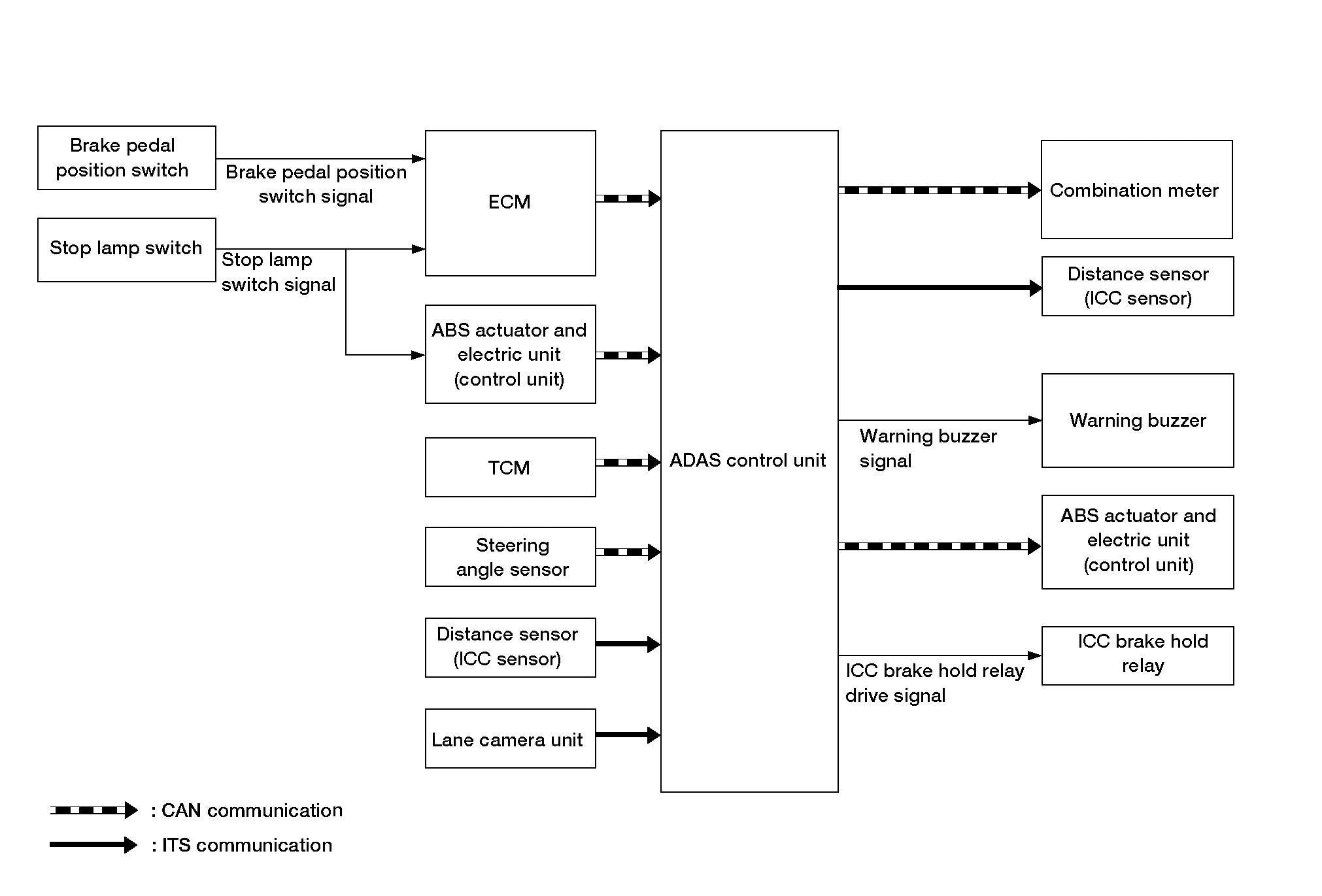 | ICC brake hold relay | ICC brake hold relay drive signal | Activates the brake hold relay and turns ON the stop lamp | ||