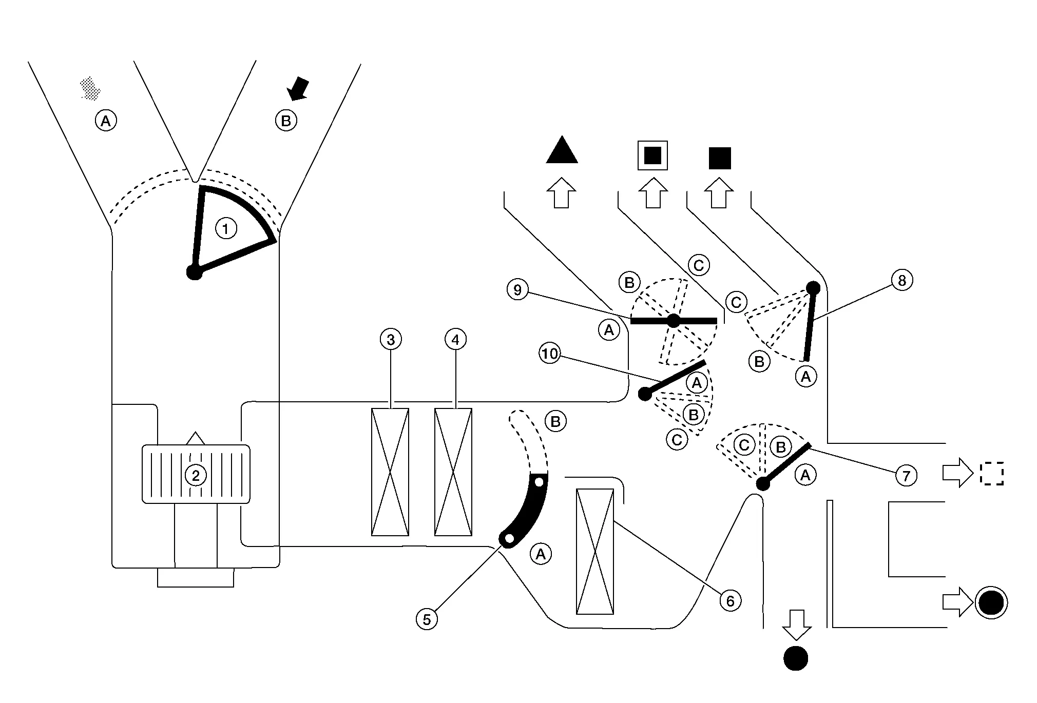 | 7. | Foot door | 8. | Ventilator door | 9. | Defroster door |