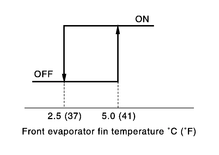 When the front evaporator fin temperature returns to 41°F (5.0°C) or more, the A/C compressor is activated.