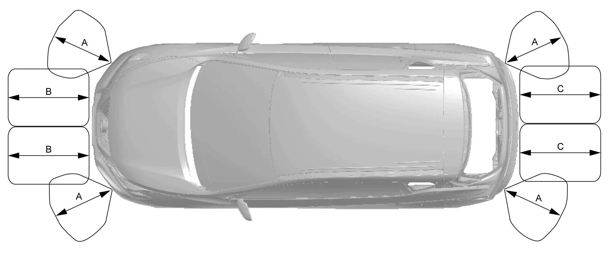 | Item (detection range) | Corner sensor | Front center sensor | Rear center sensor |