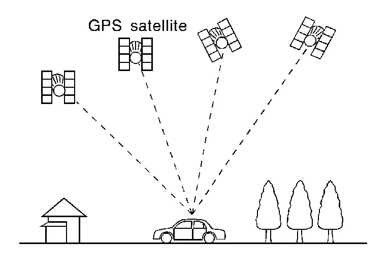 The receiver calculates the travel position in three dimensions (latitude/longitude/altitude) according to the time lag of the radio waves that four or more GPS satellites transmit (three-dimensional positioning). The GPS receiver calculates the travel position in two dimensions (latitude/longitude) with the previous altitude data if the GPS receiver receives only three radio waves (two-dimensional positioning). GPS position correction is not performed while stopping the Nissan Murano vehicle.