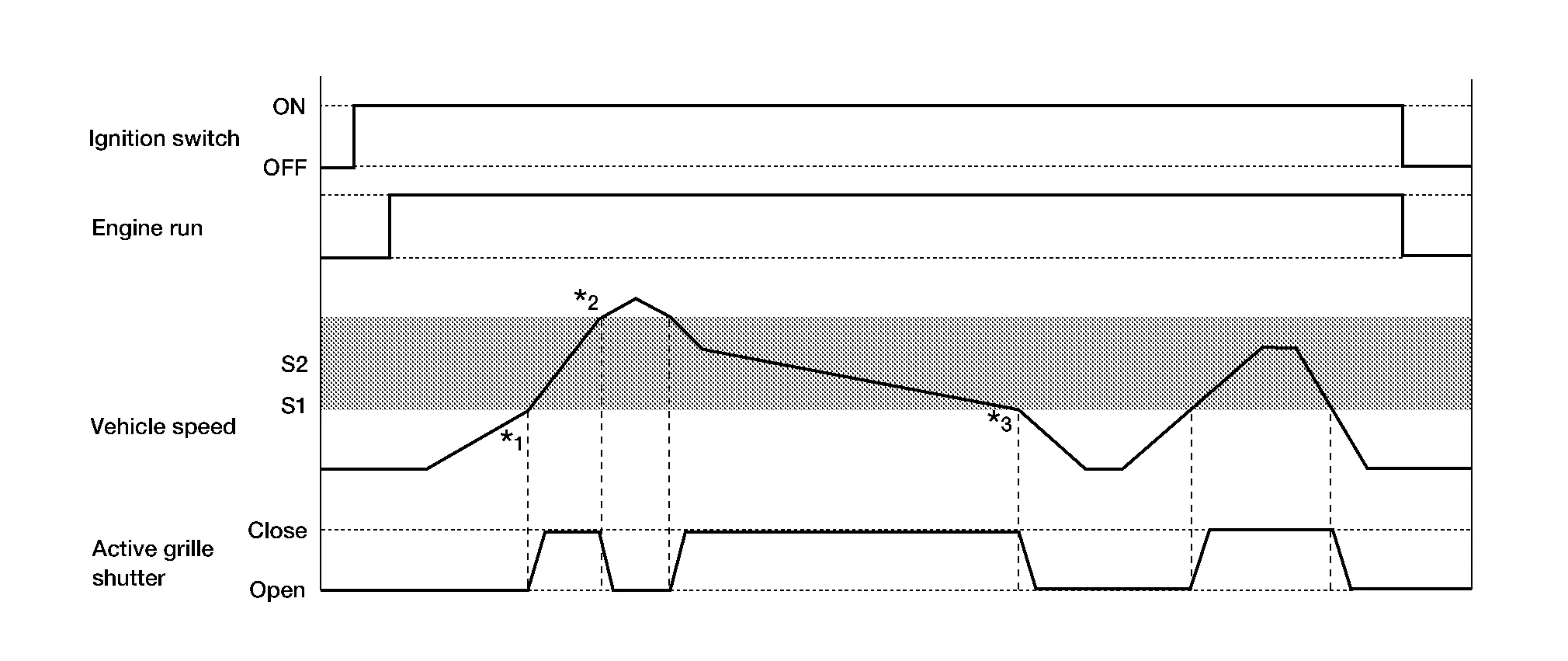 Active grille shutter is fully open when the vehicle stops or the ignition switch OFF.