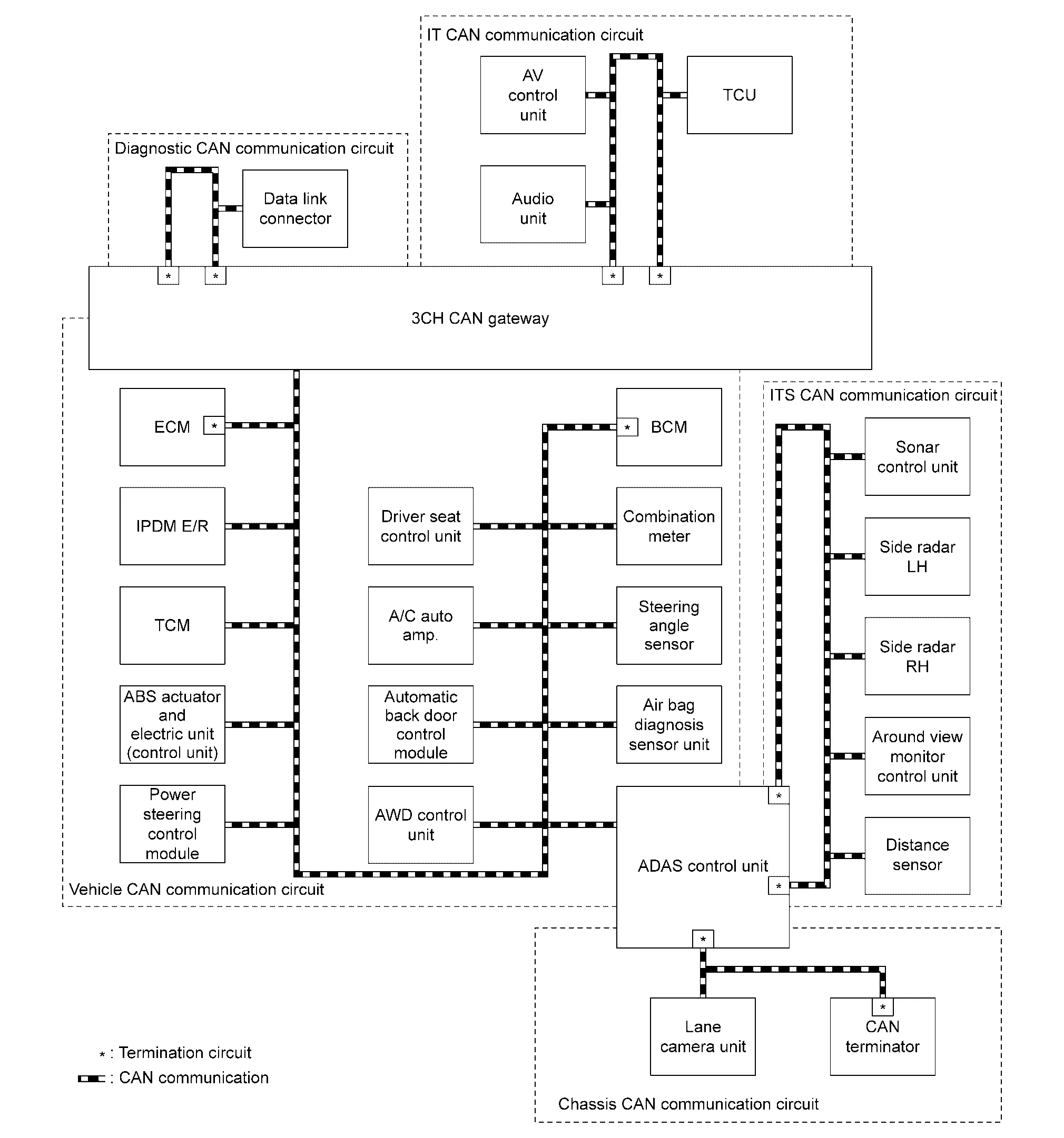 *: These are the only control units wired with both ends of CAN communication system.