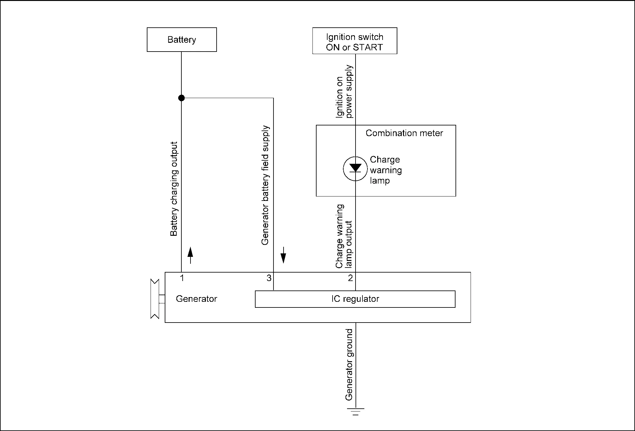 The generator provides DC voltage to operate the vehicle's electrical system and to keep the battery charged. The voltage output is controlled by the IC regulator.