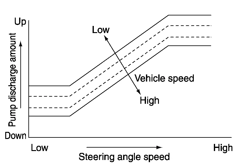 The power steering control module controls the speed of the power steering motor according to the Nissan Murano vehicle speed and steering angle speed. By changing the power steering oil pump flow, the power steering control module controls the steering assist force.