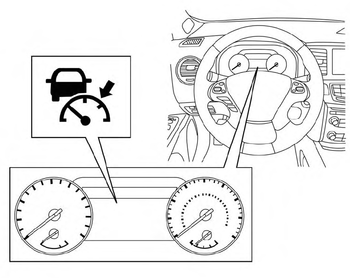 If the warning light comes on, park the vehicle in a safe place. Turn the engine off, restart the engine, resume driving and set the ICC system again.