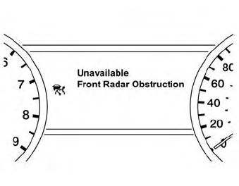The chime will sound and the “Unavailable: Front Radar Obstruction” warning message will appear in the vehicle information display.
