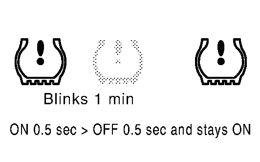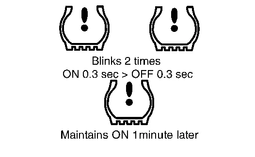 The low tire pressure warning lamp repeats blinking twice. 1 minute later, low tire pressure warning lamp turns ON. |
