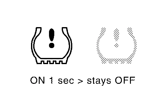 | Low tire pressure warning lamp | The low tire pressure warning lamp illuminates for 1 second, then turns OFF. |