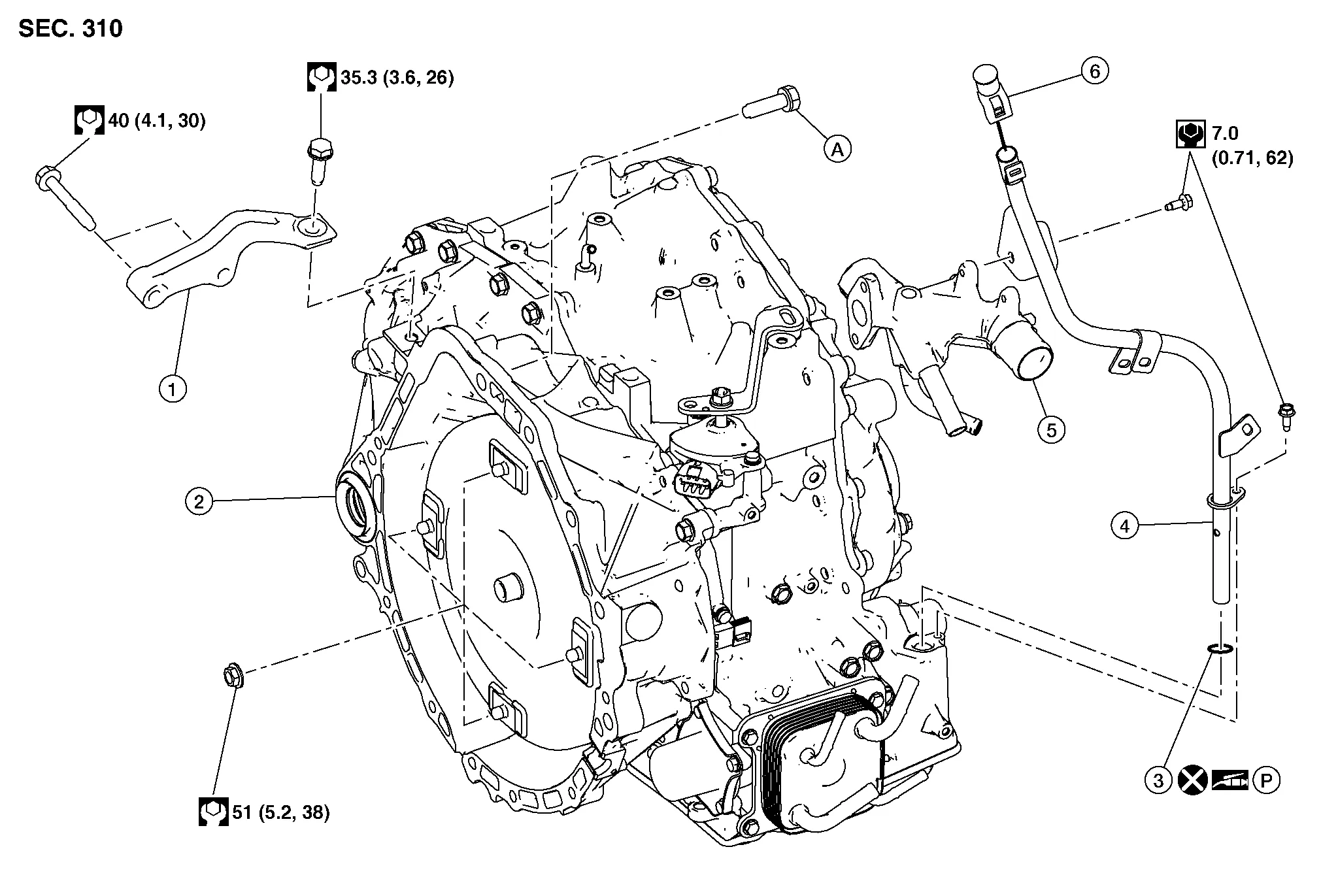| 1. | Gusset | 2. | Transaxle assembly | 3. | O-ring |